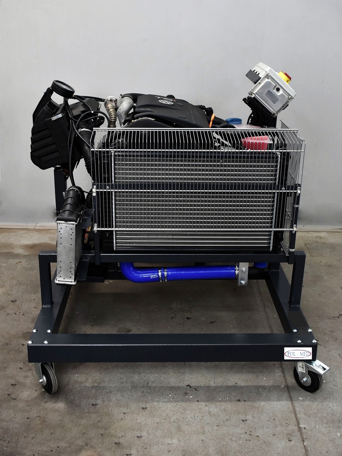 Bench for turbocharger diagnostics with wheel speed and boost pressure measurement.